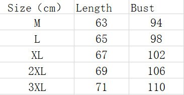 Sizes: M, L, XL, 2XL, 3XL