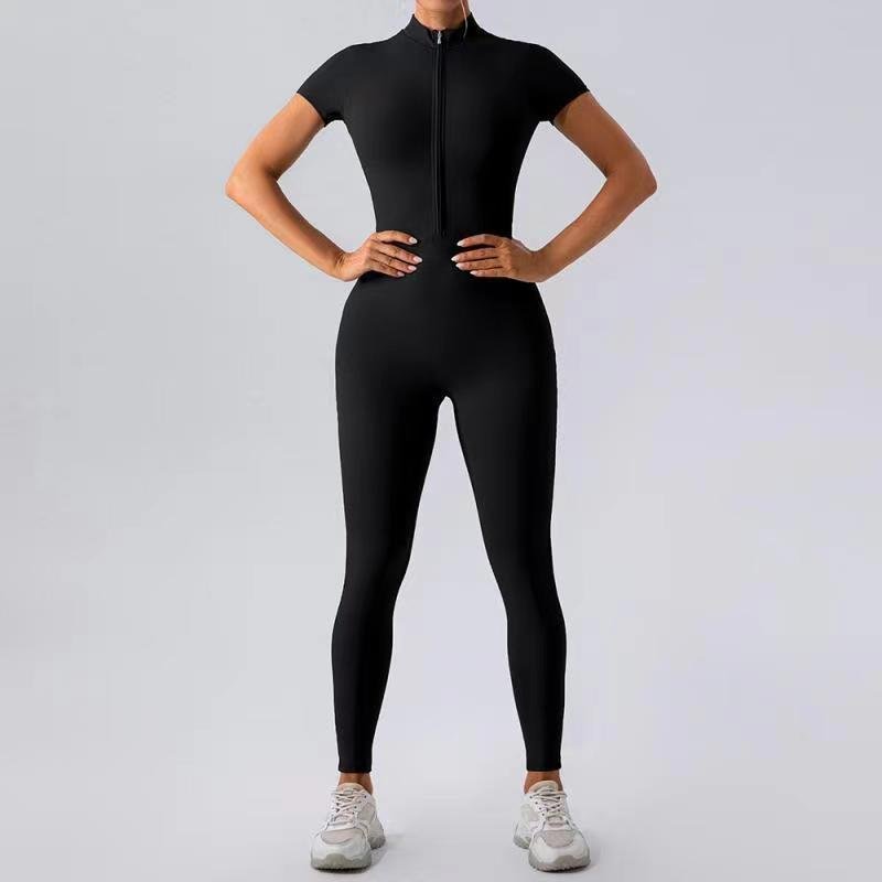 European & American Style Zipper Yoga Jumpsuit – Long-Sleeve Fitness Pants