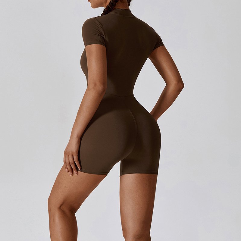 Stay stylish and comfortable during every workout with this Women’s Zipper Yoga Jumpsuit. Designed with a sleek, tight fit and short sleeves, it allows full freedom of movement while enhancing your natural silhouette.